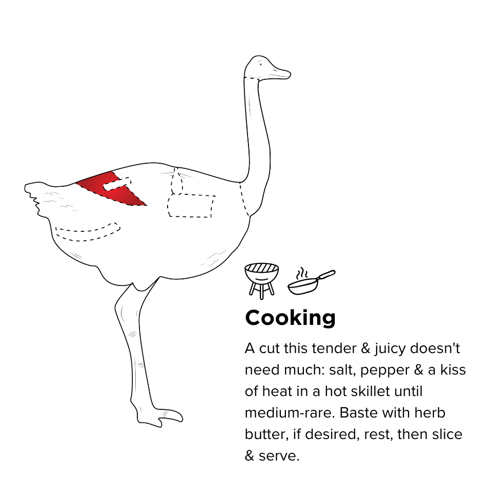 A cut this tender and juicy doesn't need much to shine: salt, pepper, and a kiss of heat unlock its full potential. The ostrich inside strip is a highly coveted red meat delicacy among chefs and home cooks alike, second only to the fan. With its lean profile and high nutrient content, the ostrich inside strip is a healthy choice that doesn’t compromise on flavor.